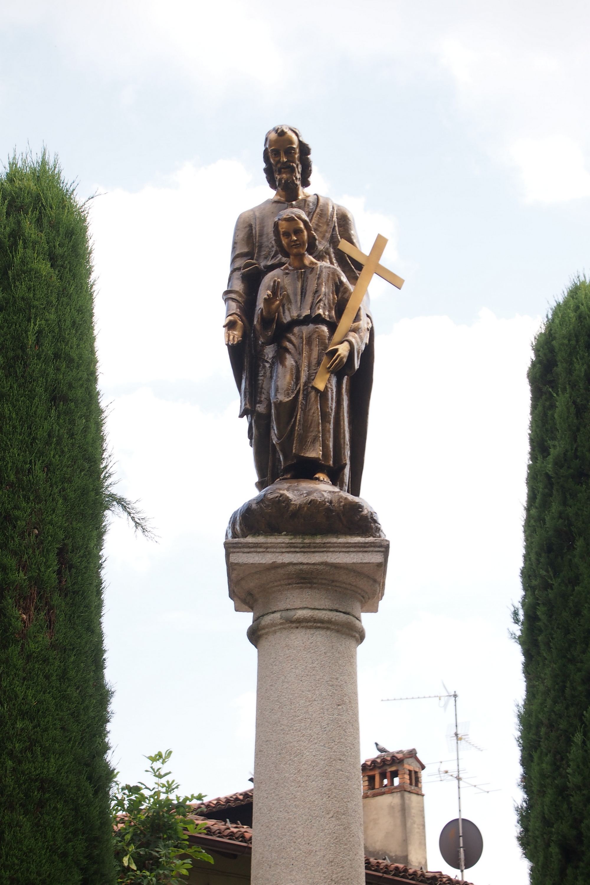 Statue poste su un'alta colonna nel cortile dell'Oratorio di Santa Maria, frazione di Inverigo. Potrebbero rappresentare Dio Padre e Gesù, oppure San Giuseppe e Gesù.