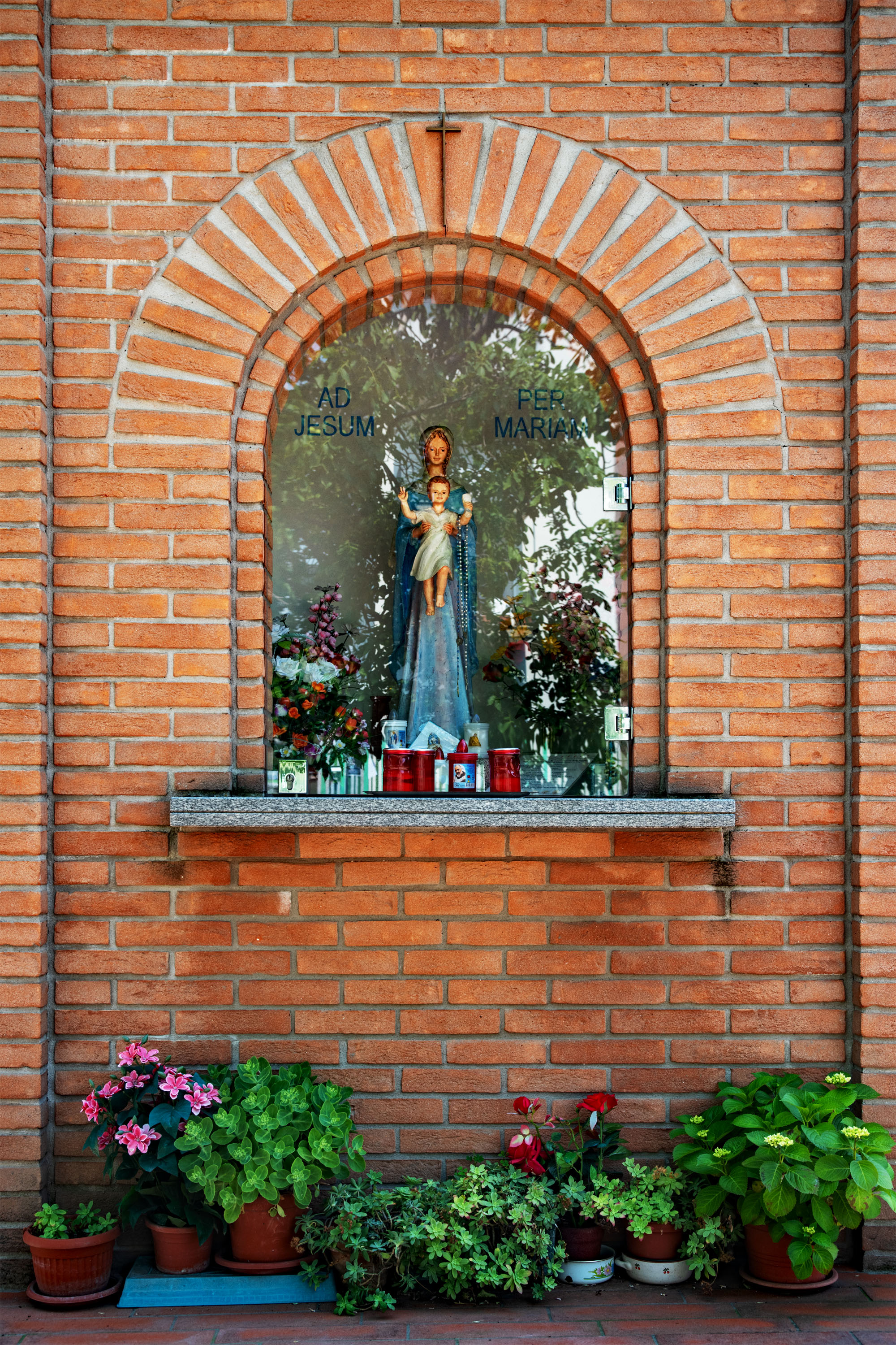 Nel parco di via Negrelli, di fronte alla scuola materna e a due panchine, si trova questa costruzione in mattoni dedicata a Cristo e a sua Madre
